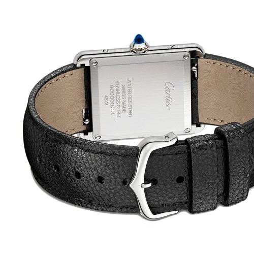 【包税】 CARTIER/卡地亚 22年秋冬新款 七夕坦克系列 男女同款白色表盘石英机芯精钢表壳黑色粒面小牛皮表带大号腕表33.7*25.5毫米WSTA0041