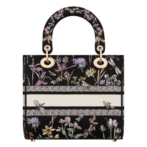 DIOR/迪奥24新款 女士中号黑色帆布多色植物动物刺绣手提包M0565OEGM_M911(新品包包)