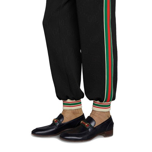 GUCCI/古驰 男士黑色GG提花平纹针织运动裤663569XJDE91043