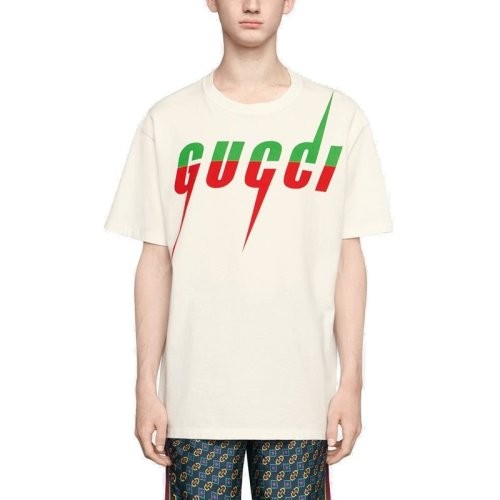 GUCCI/古驰 男士白色纯棉拼色字母锋刃印花短袖T恤 565806 XJAZY 9037