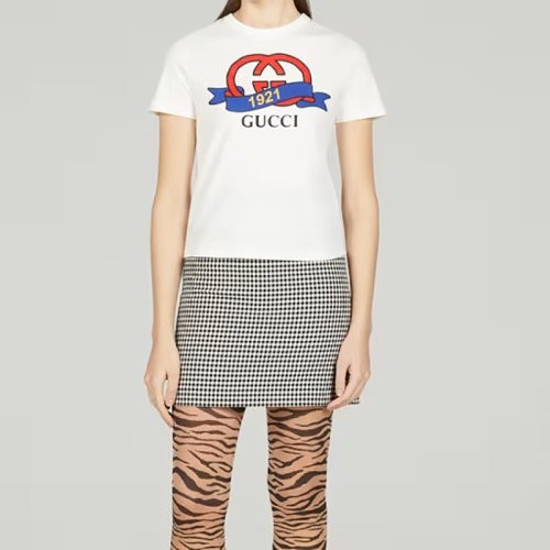 GUCCI/古驰23新款 女士白色互扣式G921棉质T恤748287XJFND9095