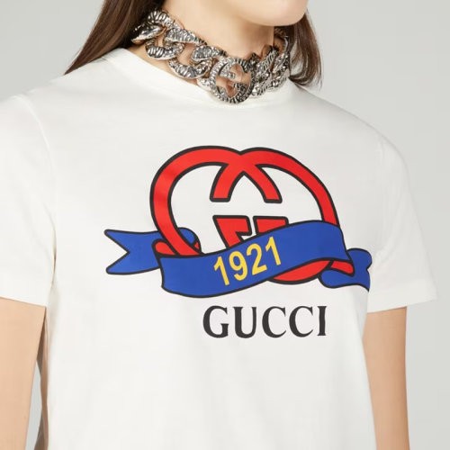 【服装】GUCCI/古驰23新款 女士白色互扣式G921棉质T恤748287XJFND9095