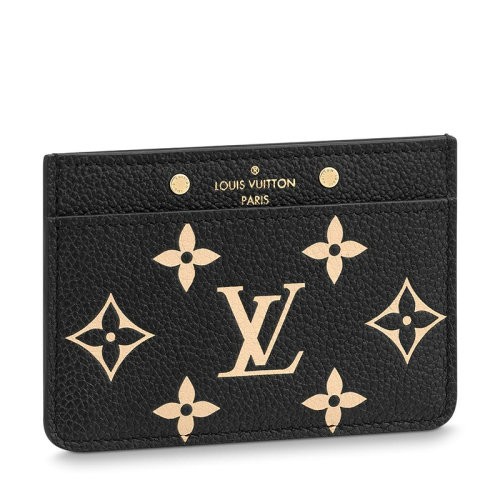 【包税】Louis Vuitton/路易威登 22春夏新款女士黑色/米色压纹软粒面牛皮革老花印花卡夹M81022